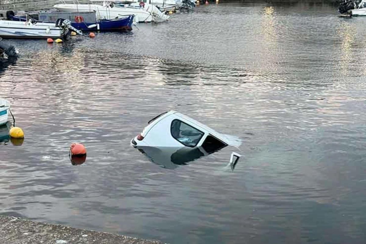 Άμεσα στελέχη του Λιμενικού βρέθηκαν στο σημείο και βρήκαν την 34χρονη οδηγός του οχήματος να προσπαθεί να απεγκλωβίσει την 66χρονη συνοδηγό.