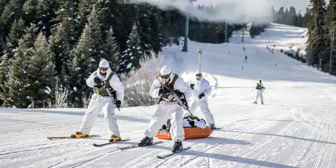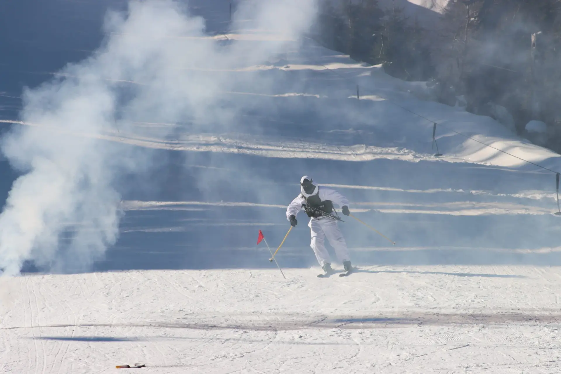 Οι ορεινοί καταδρομείς ή αλπινιστές όπως αποκαλούνται εκπαιδεύονται όχι μόνο στο σκι αλλά και στο πυρ εν κινήσει.
