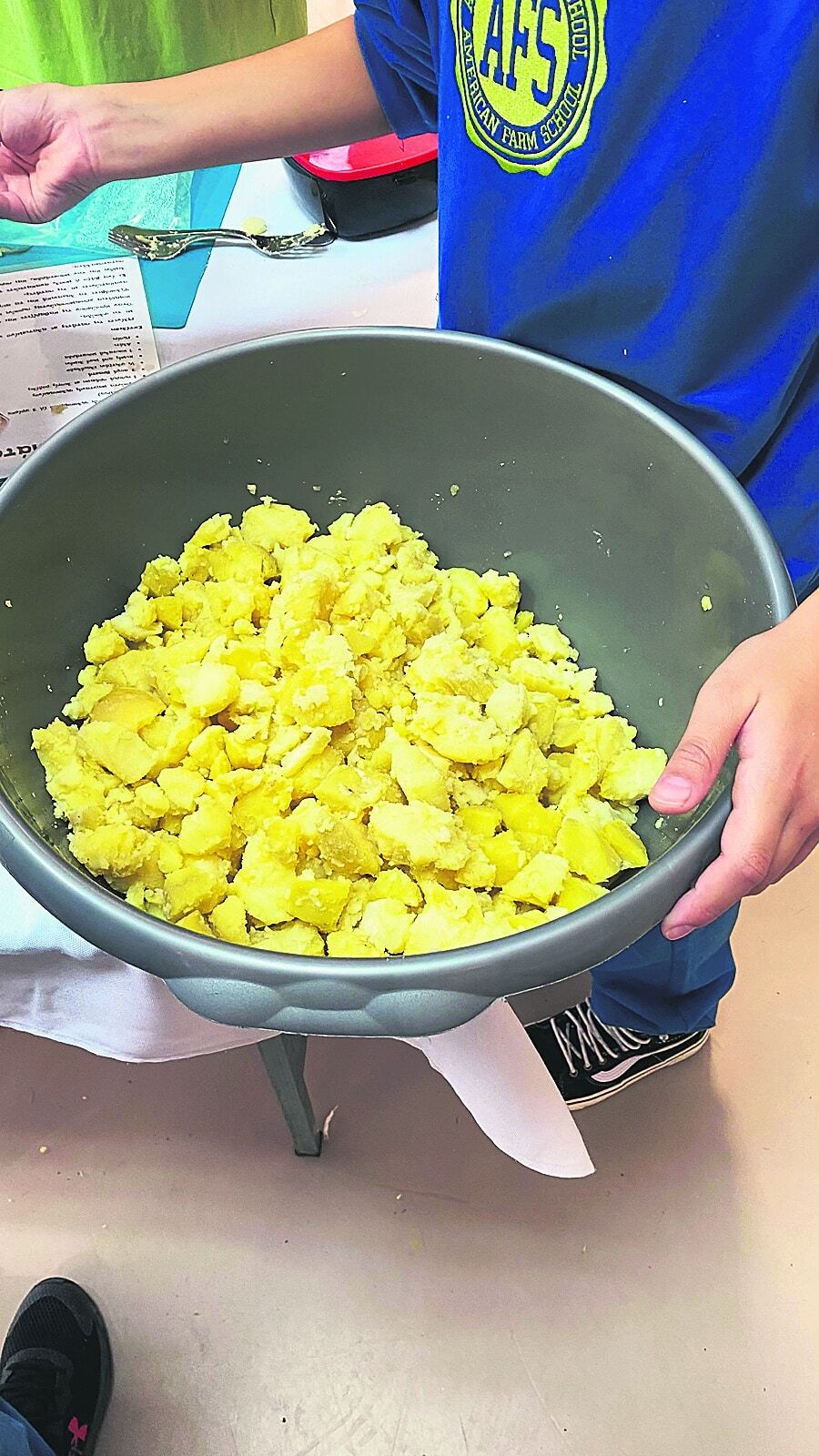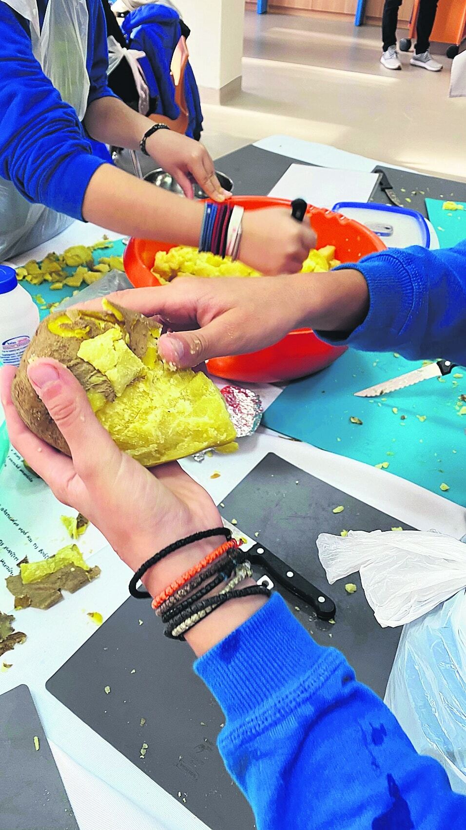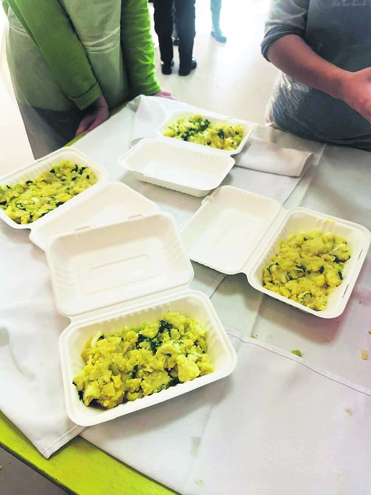 Αρχικά, οι μαθητές της Δ’ τάξης μαγείρεψαν με τη διατροφολόγο του σχολείου, Δάφνη Νταλάπα, και συνεργάστηκαν με τους «chefs for zero hunger», οι οποίοι φροντίζουν να μοιράζουν καθημερινά φαγητό σε άστεγους στο κέντρο της Θεσσαλονίκης. «Ετοιμάσαμε μακαρονάκι της Σχολής. Ζυμαρικά με λαχανικά και κοτόπουλο τη μία μέρα και ζυμαρικά με λαχανικά και κεφτεδάκια την άλλη. Μαζί προσφέραμε ψητό κουνουπίδι, γιαούρτι και ψωμί», είπε στον «Ε.Τ.» η κ. Νταλάπα. Οι δέκα μερίδες φαγητού παραδόθηκαν αυθημερόν σε έναν άστεγο, τον David, ο οποίος διαβιοί απέναντι από τον Λευκό Πύργο, όπου από αυτόν πηγαίνουν το απόγευμα και παίρνουν τις μερίδες τους οι υπόλοιποι. «Μας ευχαρίστησε πολύ εκ μέρους όλων», είπε η διατροφολόγος, προσθέτοντας ότι τα παιδιά μαγείρεψαν, συσκεύασαν και στην ουσία δέχτηκαν να μη… φάνε ό,τι ετοίμασαν για να τα προσφέρουν.