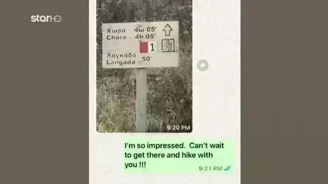 «Έβλεπα ότι δεν τα έχει λάβει αλλά θεωρούσα οκ, φυσιολογικό. Κάποια στιγμή που θα κατέβαινε προς τα κάτω θα έπιανε Wi-Fi. Είχε πάει πια, σχεδόν 14:00 και έβλεπα ότι δεν είχε λάβει ακόμα τα μηνύματα. Άρχισα να του στέλνω μήνυμα στο άλλο το κινητό, στο γαλλικό, τα οποία φαινόταν ότι τα λαμβάνει. Εγώ του έστελνα λοιπόν, μηνύματα, τον έπαιρνα τηλέφωνο, τον ξανάπαιρνα, τον ξανάπαιρνα… δεν απαντούσε».