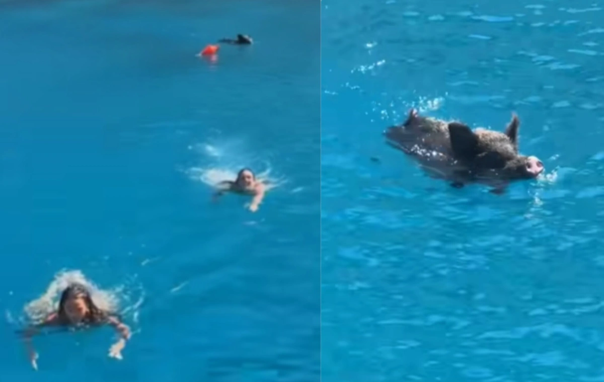 Σε βίντεο που έχει ανέβει στο TikTok φαίνονται οι δύο γυναίκες μέσα στη θάλασσα όταν ξαφνικά εμφανίστηκε ένα γουρούνι να κολυμπάει και να κατευθύνεται προς εκείνες.