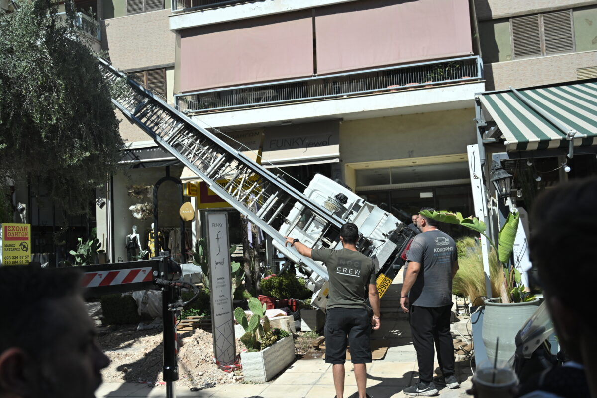Σοβαρό συμβάν σημειώθηκε το μεσημέρι του Σαββάτου (20/9) στο κέντρο της Γλυφάδας, όταν γερανοφόρο όχημα εξετράπη της πορείας του και ανετράπη, πέφτοντας πάνω σε καφετέρια στην οδό Φοίβης.