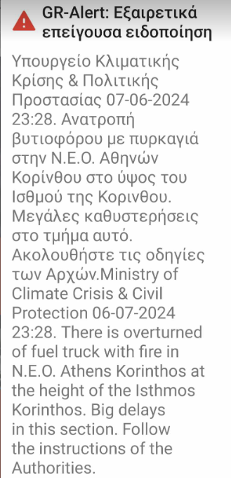 Εστάλη μάλιστα και μήνυμα από το 112 σε κατοίκους ορισμένων περιοχών, μέσω του οποίου παρακαλούνται οι οδηγοί να ακολουθούν τις οδηγίες των Αρχών.