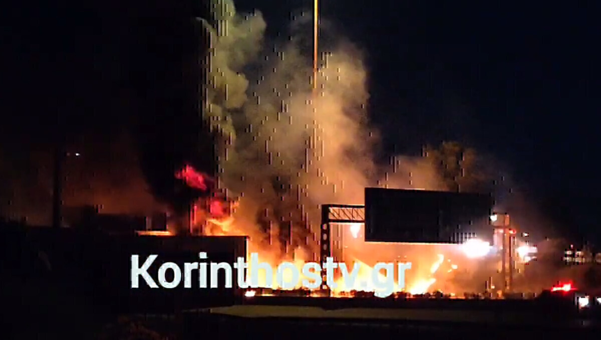 «On air» τρομακτική έκρηξη μετά την ανατροπή βυτιοφόρου στον Ισθμό