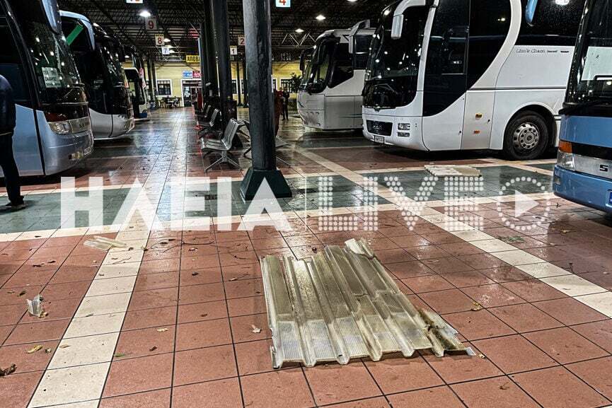 Το πρώτο “σημάδι” των συνεπειών του ανεμοστρόβιλου, που σήμανε συναγερμό στις Αρχές ήταν το ξήλωμα της στέγης στην αποβάθρα του κεντρικού σταθμού του ΚΤΕΛ Ηλείας στην οδό Ερυθρού Σταυρού.