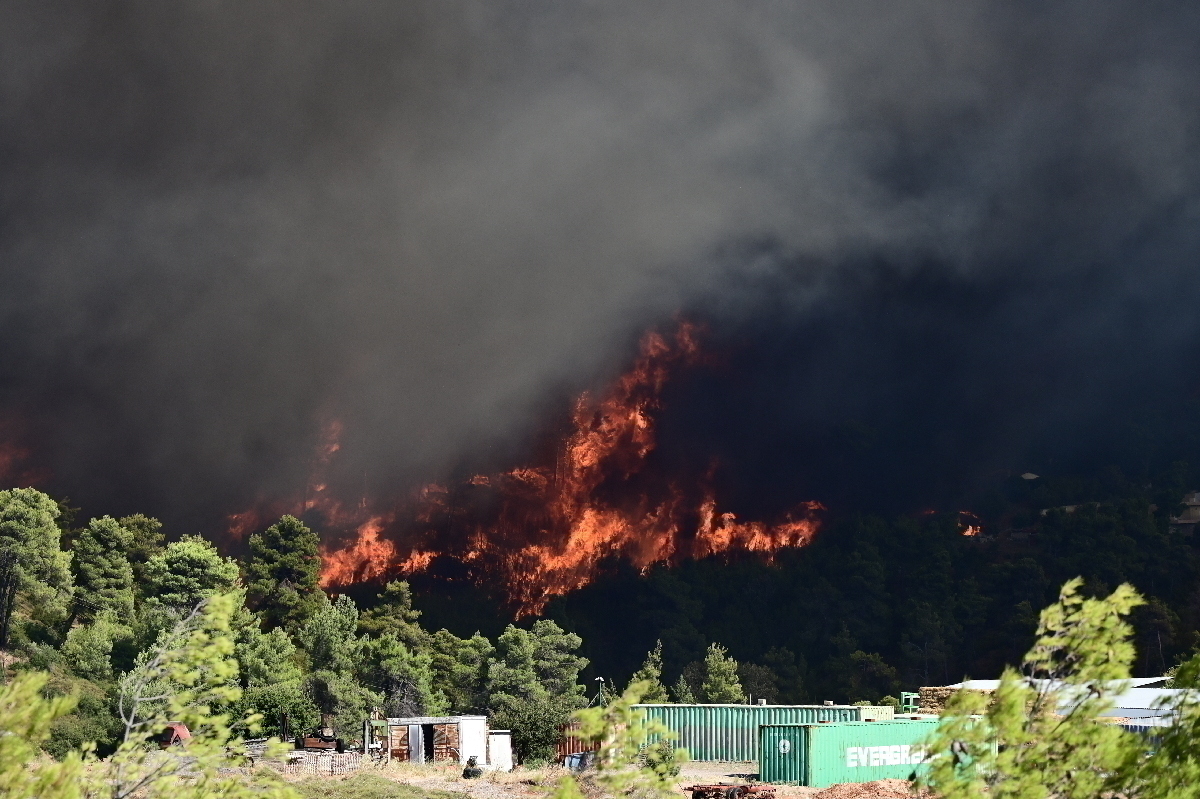 Ανεξέλεγκτη η φωτιά στον Βαρνάβα Αττικής – Οι φλόγες ξεπερνούν και τα 25 μέτρα