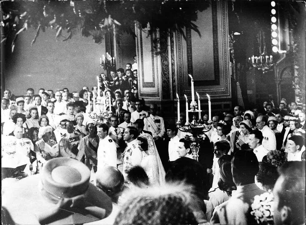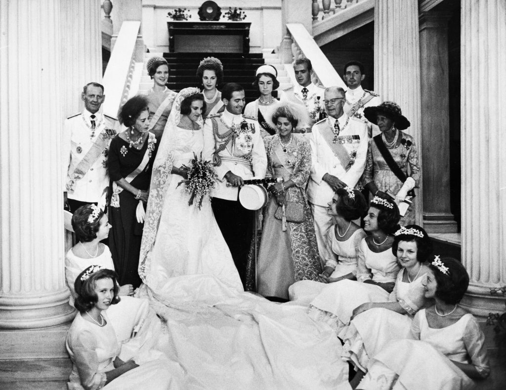 «Μέσα στη Μητρόπολη επικρατεί συνωστισμός αφού 1.200 προσκεκλημένοι παρίστανται στο μυστήριο ορθοί! Μεταξύ αυτών υπάρχουν 18 βασιλείς και βασίλισσες, επτά διάδοχοι θρόνου, δύο βασιλικοί σύζυγοι, δύο τέως βασιλείς, 103 πρίγκιπες και πριγκίπισσες, 20 δούκες και κόμητες και 87 αρχηγοί κρατών! Κατά τη διάρκεια της τελετής επάνω από τα κεφάλια του Κωνσταντίνου και της Αννας-Μαρίας κρατάει δύο χρυσά στέμματα που είναι τα στέφανα, η πρώτη κουμπάρα βασίλισσα Φρειδερίκη… Κατά τη διάρκεια της τέλεσης του μυστηρίου, που ακολουθεί με βυζαντινή μεγαλοπρέπεια, ρίπτονται 101 κανονιοβολισμοί από τον Λυκαβηττό και βολές πυροβόλων από τα πολεμικά πλοία του Στόλου που συνοδεύονται από τους συριγμούς των σειρήνων τους, ενώ κτυπούν χαρμόσυνα και οι καμπάνες των ναών».