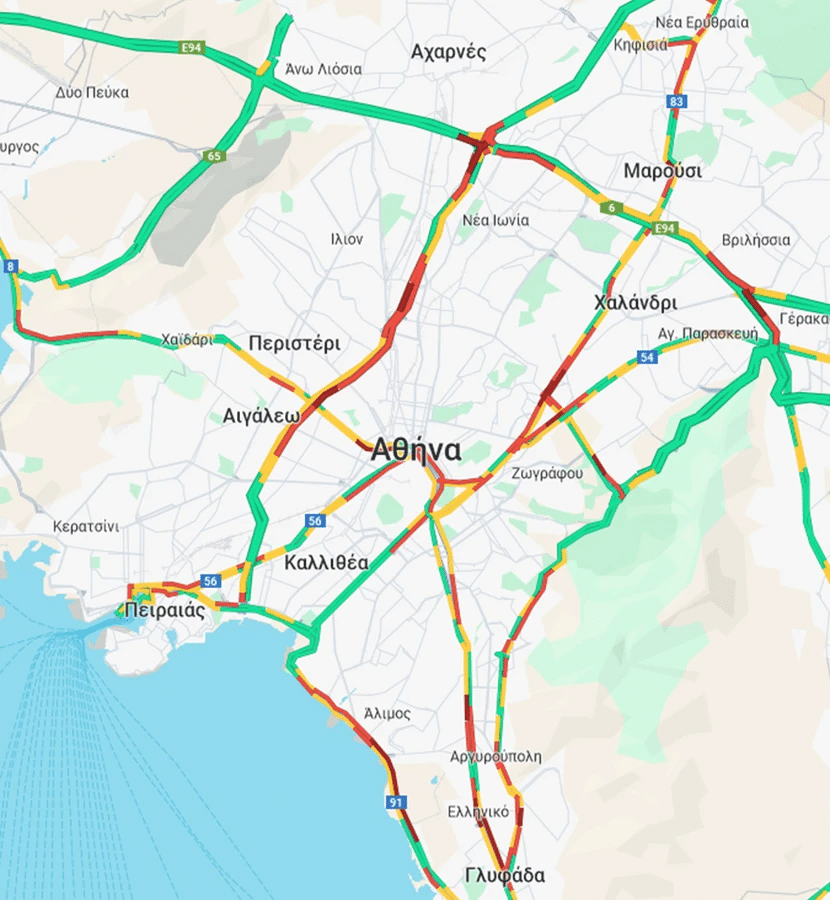 Ιδιαίτερη αυξημένη είναι η κίνηση και στην άνοδο της λεωφόρου Κηφισού από το ύψος του Ρέντη έως τη Νέα Φιλαδέλφεια.