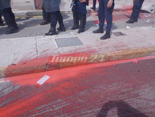 Συγκεκριμένα στο ύψος του σιδηροδρομικού σταθμού του ΟΣΕ, αντιεξουσιαστές που βρίσκονταν στο τέλος της πορείας επιτέθηκαν σε δυνάμεις της Αστυνομίας με πέτρες, καδρόνια και μπογιές. Τα δε ΜΑΤ απάντησαν με χρήση χημικών.