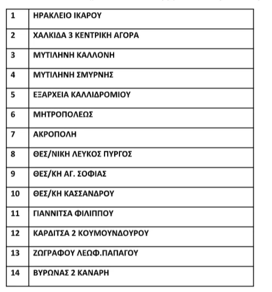 Πρόκειται για τα εξής καταστήματα στη χώρα: