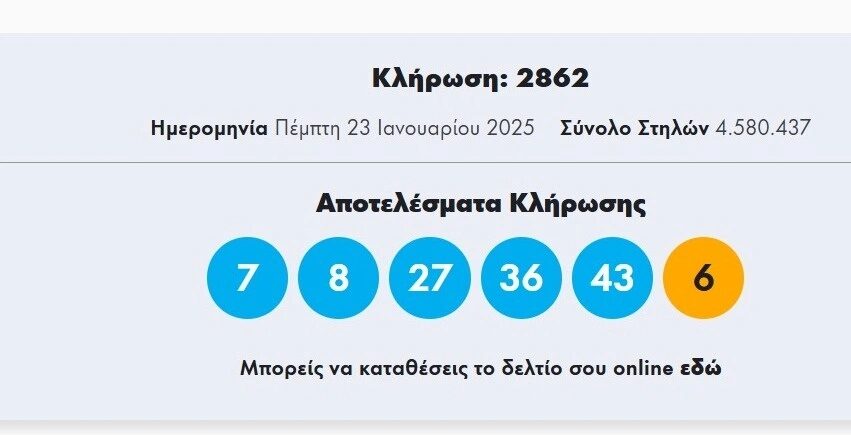 - Κλήρωση Τζόκερ (23/01): Αυτοί είναι οι τυχεροί αριθμοί που κερδίζουν