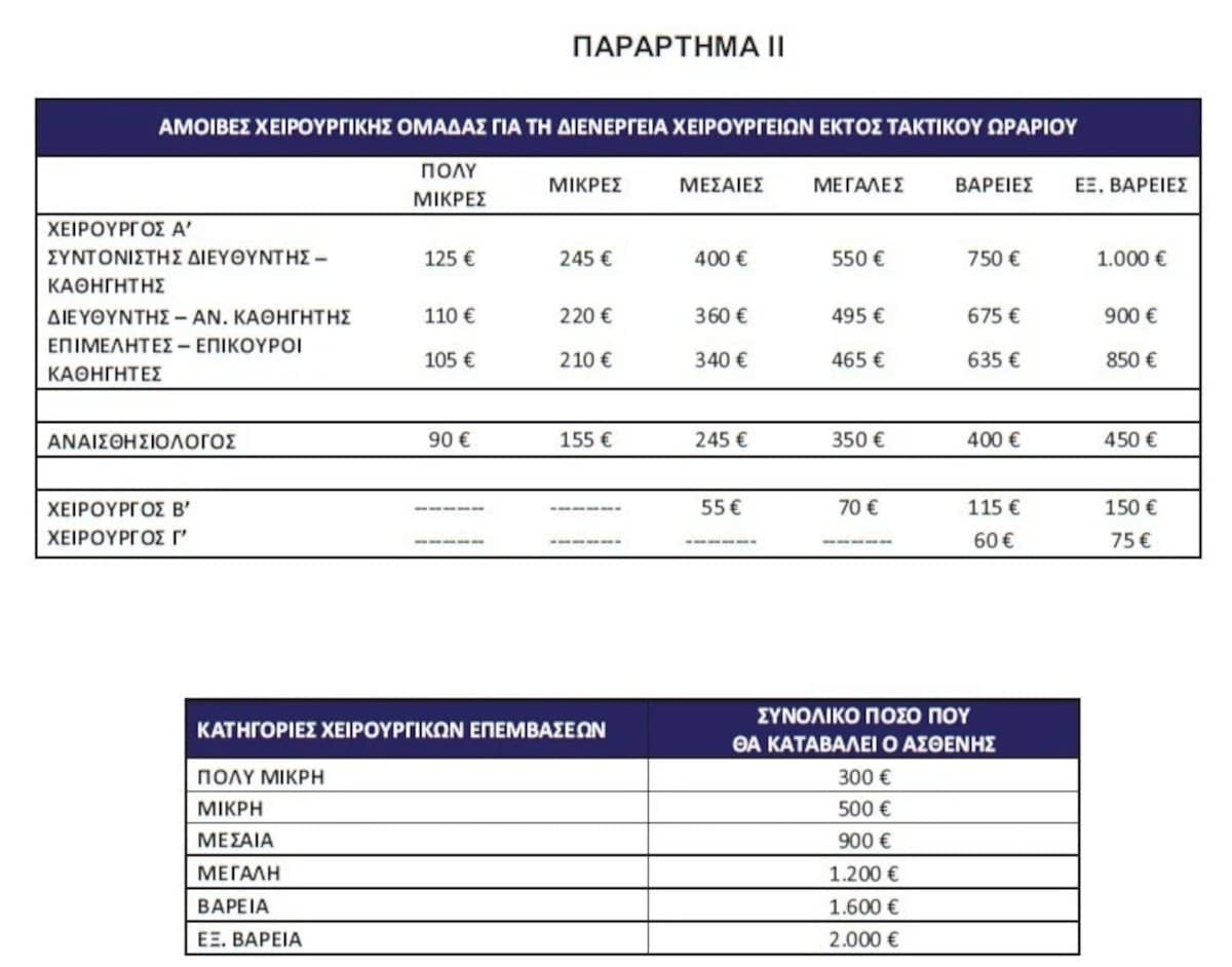 Απογευματινά χειρουργεία: Αναλυτικά οι τιμές ανά επέμβαση