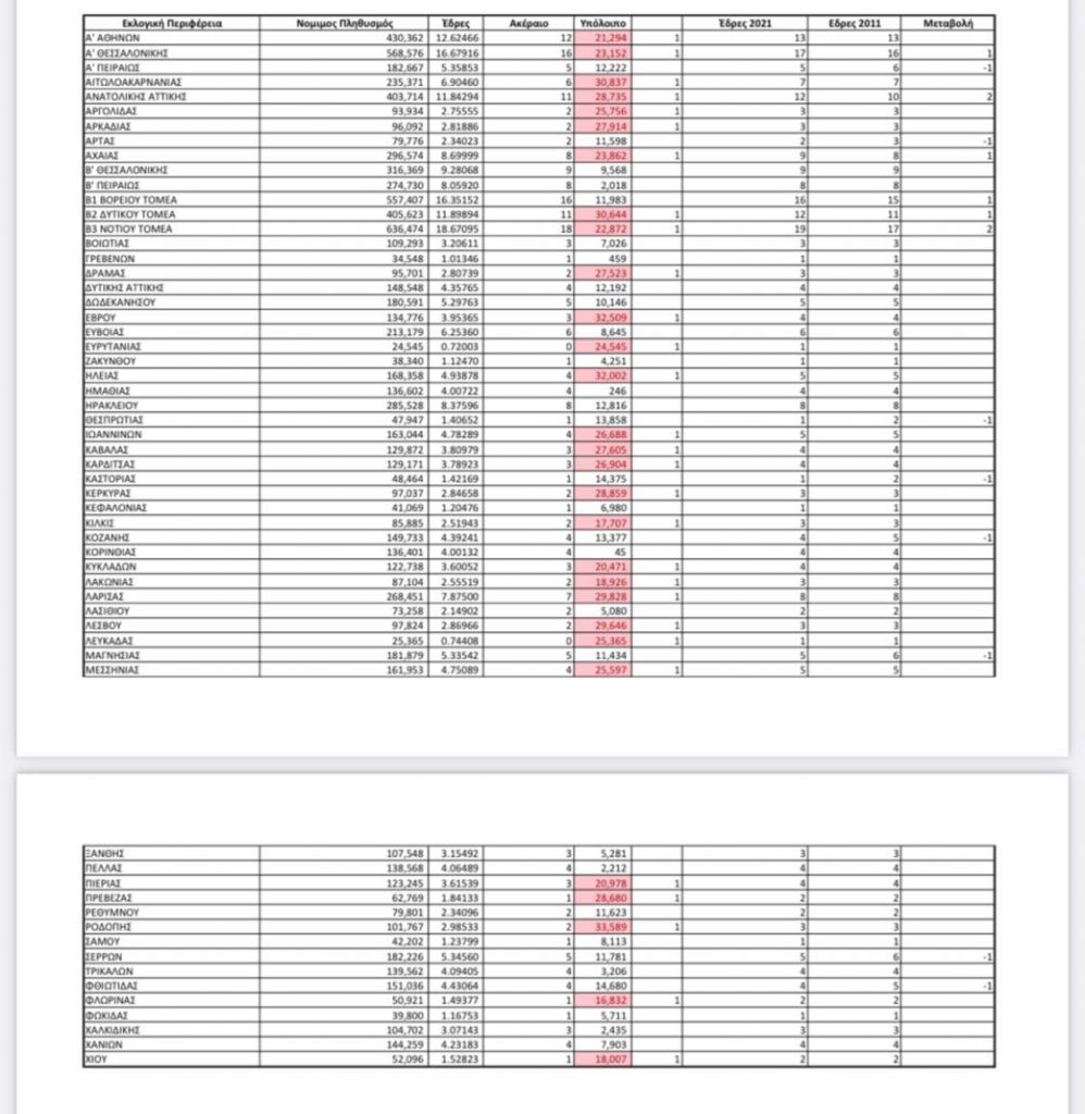 Ποιες περιφέρειες χάνουν έδρες