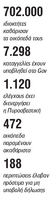 Να σημειωθεί πως συνεπείς στις υποχρεώσεις τους, δηλαδή στον καθαρισμό των οικοπέδων τους εντός της προθεσμίας που είχε δώσει η κυβέρνηση -μετά και τις σχετικές παρατάσεις- ήταν περί τους 702.000 ιδιοκτήτες οικοπέδων.