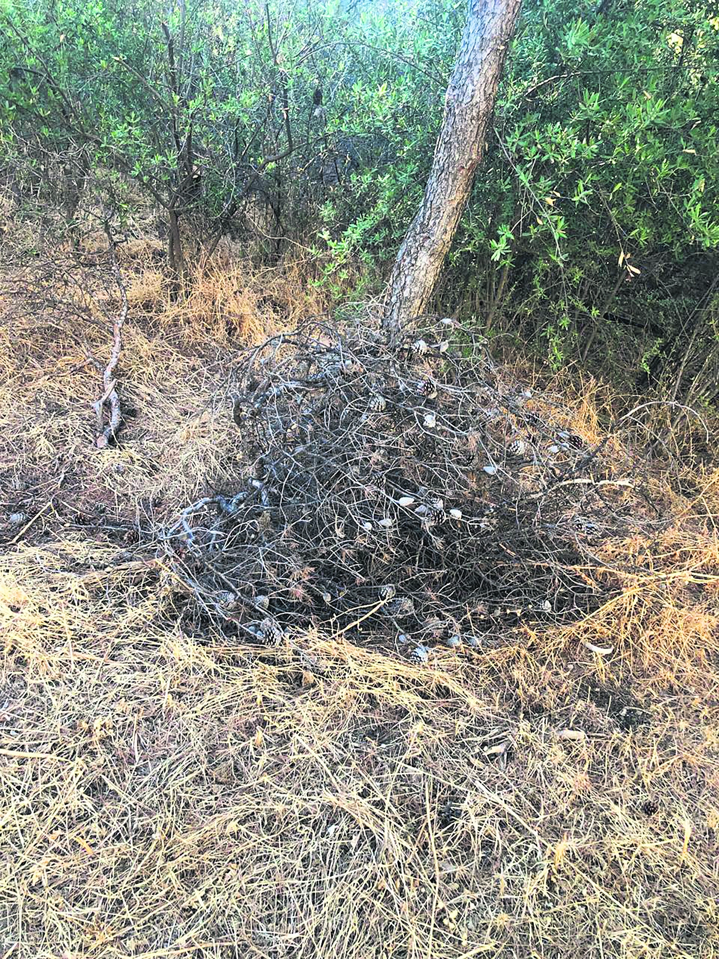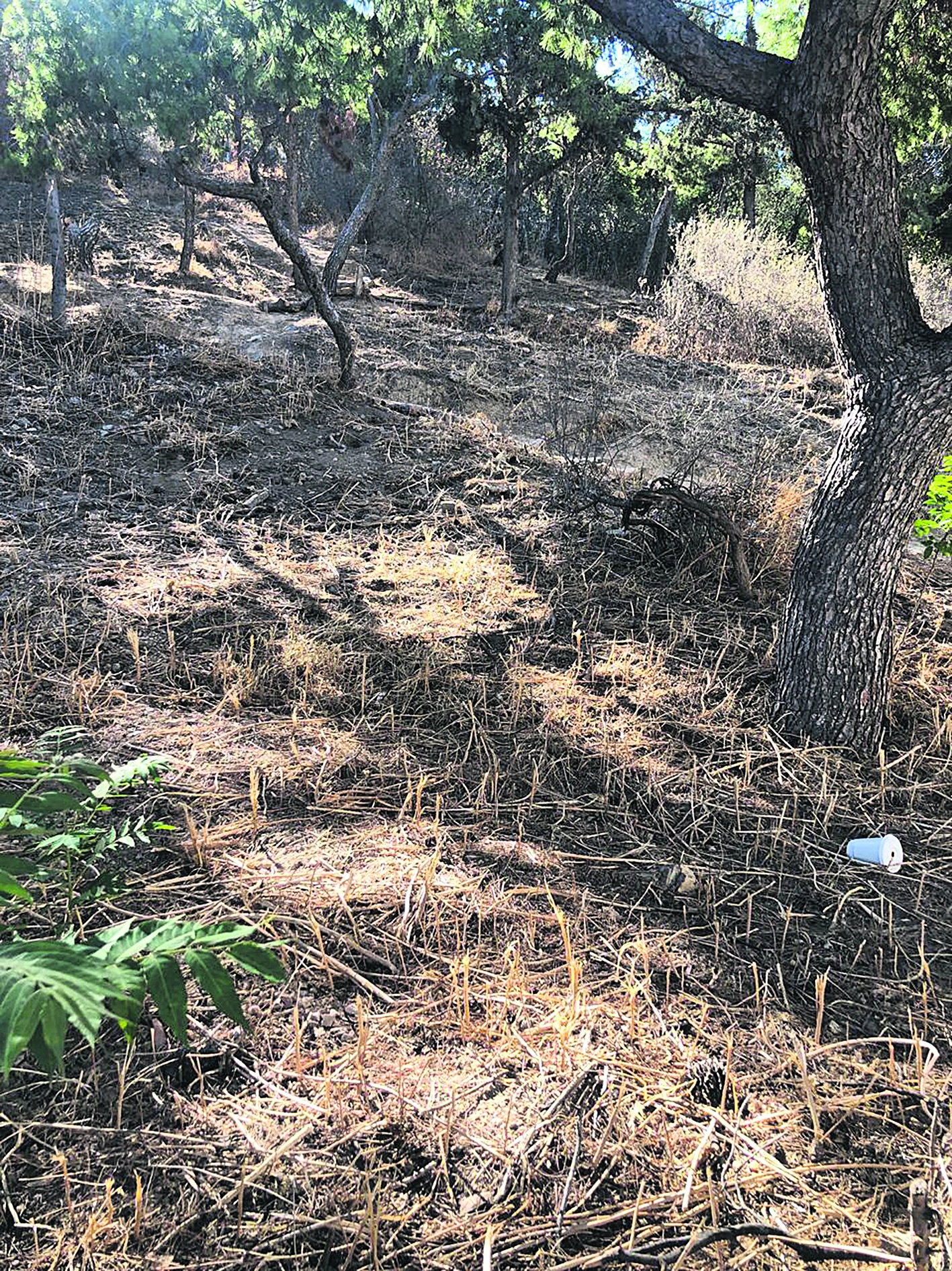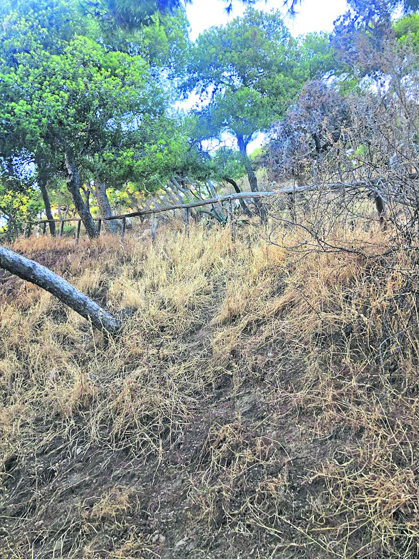 Η εικόνα -όπως την αποτύπωσε ο φωτογραφικός φακός του «Ελεύθερου Τύπου»- είναι αποκαρδιωτική: ξερά κλαδιά, πεσμένα φύλλα και πλήθος από ξερά χόρτα συνθέτουν ένα εξαιρετικά εύφλεκτο τοπίο.