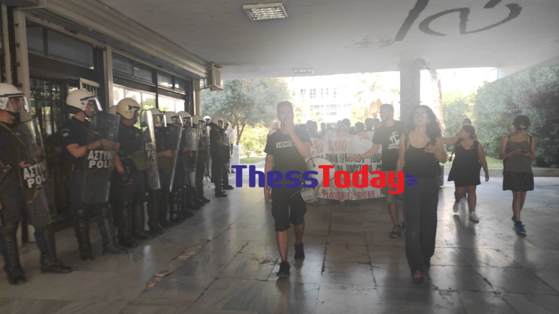 Υπενθυμίζεται ότι, μετά τη λήξη της διαμαρτυρίας που πραγματοποίησαν φοιτητές μπροστά στο κτίριο του ΑΠΘ το πρωί της Τρίτης, ομάδα ατόμων εισήλθε στο ισόγειο του κτιρίου και προκάλεσε φθορές στα τουρνικέ.