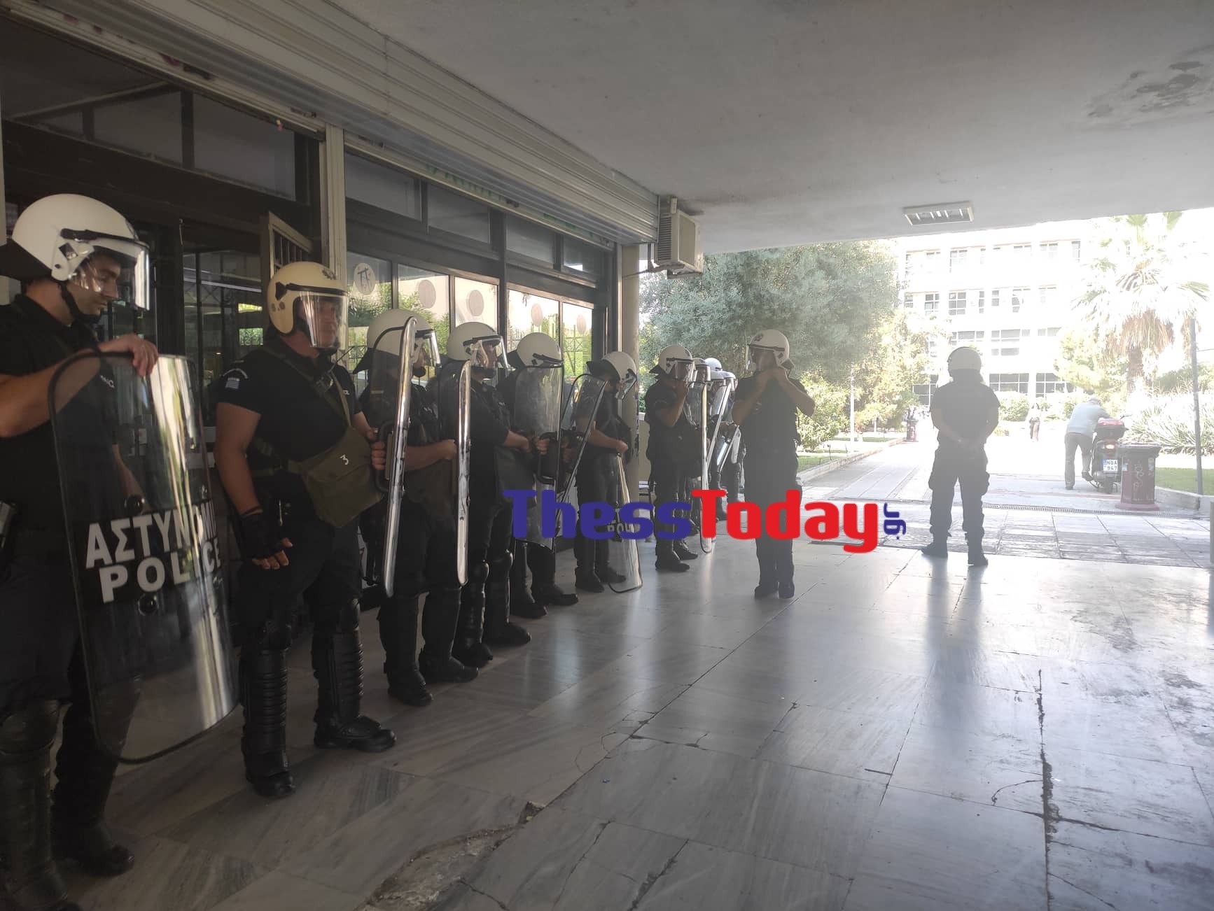 Σημειώνεται πως όλοι οι δράστες είχαν καλυμμένα τα χαρακτηριστικά του προσώπου τους, ενώ, ύστερα από προηγούμενη επικοινωνία με τις Πρυτανικές αρχές του ΑΠΘ, οι αστυνομικές δυνάμεις βρίσκονταν σε απόσταση από το σημείο.