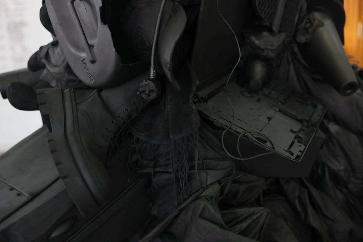 Η σύνθεσή του περιλαμβάνει διάφορα αντικείμενα που σχετίζονται με ταξίδια, όπως βαλίτσες, παπούτσια, λάπτοπ, τσάντες, χτένες κτλ.