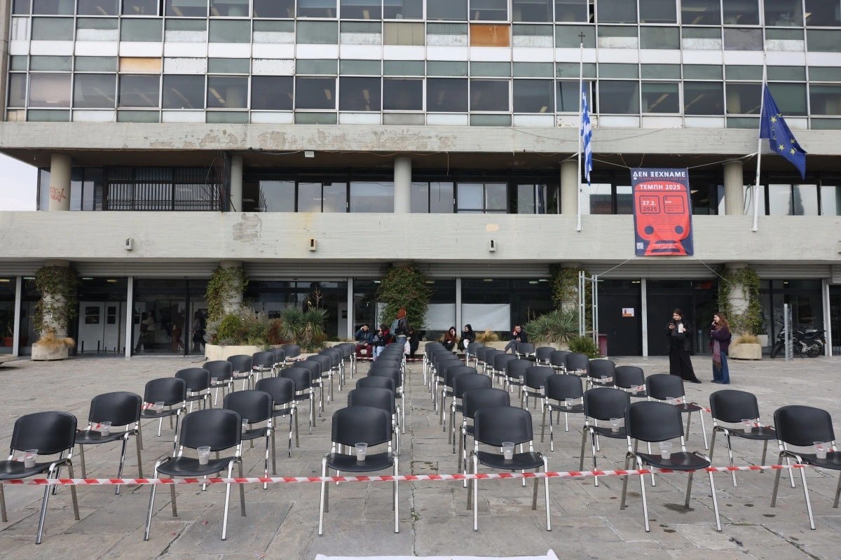 Επιπλέον, στον εξωτερικό χώρο μάλιστα υπάρχουν 57 άδειες καρέκλες που θα μείνουν άδειες μέχρι την κορύφωση των εκδηλώσεων μνήμης.