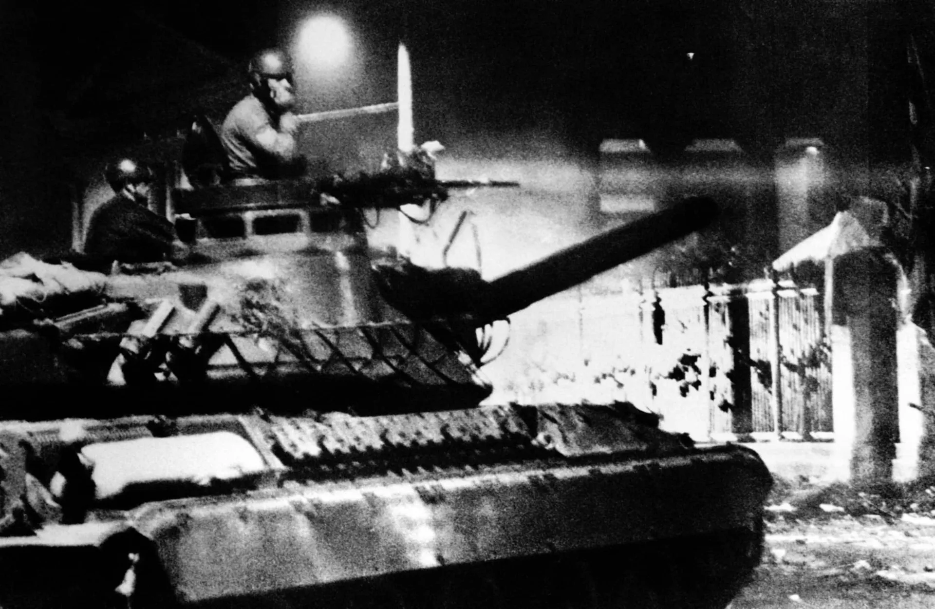 Κατά τις τρεις παρά πέντε, είχε περιγράψει ο κ. Σαρρηκώστας στην εφημερίδα, άκουσε τον λοχία πάνω στο τανκ να λέει στον ασύρματο «διατάξτε». Ο πυργίσκος του τανκ που έβλεπε στην πύλη του Πολυτεχνείου γυρίζει προς τα πίσω.