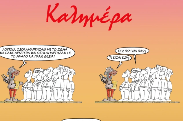 Η καλημέρα της Τρίτης, κρύβει ένα… διαχωρισμό όπως τουλάχιστον τον σχεδίασε ο γνωστός σκιτσογράφος, Αρκάς που επέλεξε να μας τη στείλει μέσω του διαβόλου (πρωί πρωί).