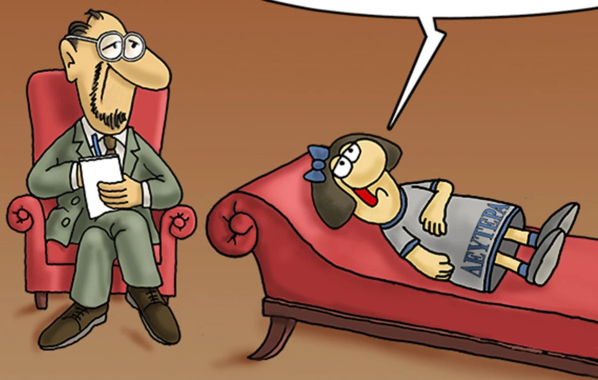 Στη σημερινή δευτεριάτικη καλημέρα του ο γνωστός σκιτσογράφος τοποθετεί την Δευτέρα εκεί που της… ταιριάζει. Και φυσικά αυτό δεν είναι άλλο από το ντιβάνι του ψυχολόγου.