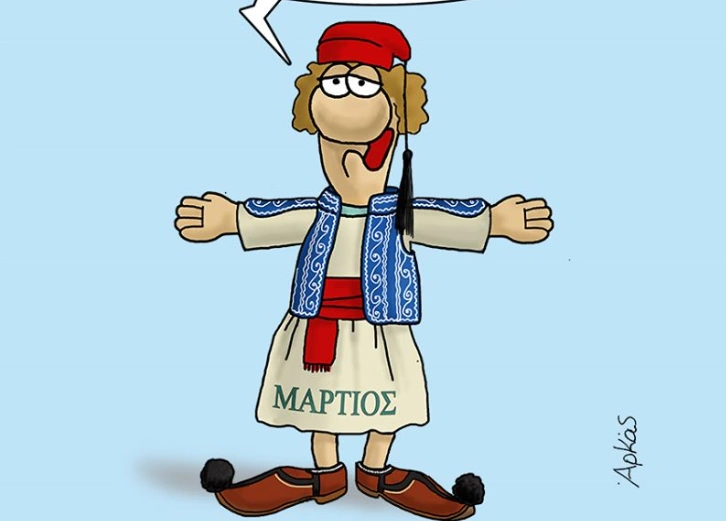 Με τον Μάρτιο ντυμένο… τσολιαδάκι μας καλημερίζει και σήμερα (25/3) ο γνωστός σκιτσογράφος μέσα από τη σελίδα του στο Facebook. Μάλιστα, λόγω της ημέρας οι ευχές του γίνονται ποιηματάκι που λέει: