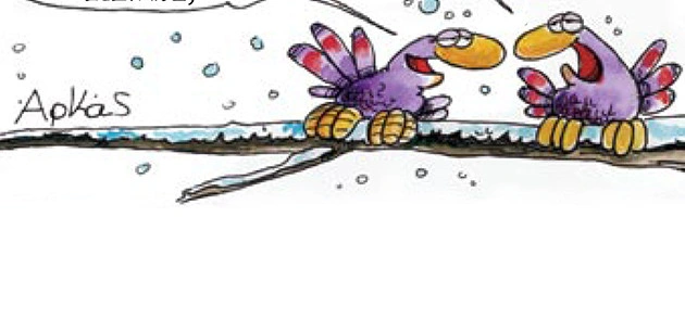 Στο σημερινό επίκαιρο σκίτσο ο σκιτσογράφος έχει σχεδιάσει τα γνωστά σπουργίτια να είναι πάνω σε ένα δέντρο και να συζητούν, ενώ πέφτουν νιφάδες χιονιού.