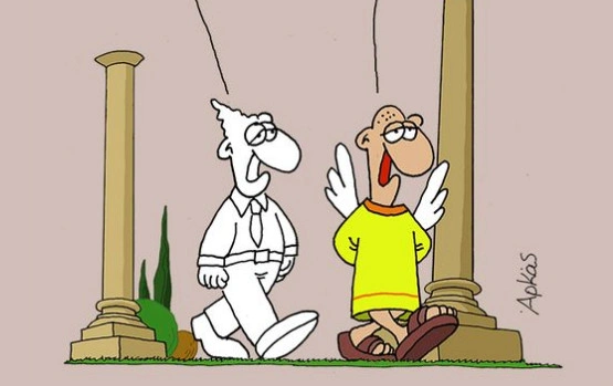 Ο γνώστος σκιτσογράφος στη σημερινή του καλημέρα από το facebook, δείχνει τον Άγγελο να περπατά στους δρόμους του παραδείσου και δίπλα του ένας από τους… πεθαμένους.