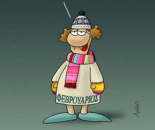 Μία ακόμα μέρα απομένει για να μας αποχαιρετήσει ο Φεβρουάριος και ο Αρκάς, που μάλλον τις… μετράει, έχει στο σκίτσο του τον, ζεστά ντυμένο με κασκόλ και σκούφο, Φεβρουάριο να λέει «Μία και σήμερα».