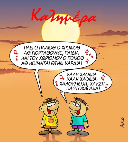 Ο γνωστός σκιτσογράφος με πρωταγωνιστές τον Θανασάκη και το φίλο του τον Χάρη, εύχεται τραγουδώντας το «πάει ο παλιός ο χρόνος» με μάλλον… παράδοξο τρόπο!
