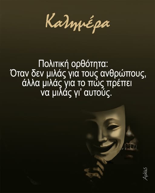 Όπως λέει πολιτική ορθότητα είναι όταν δεν μιλάς για τους ανθρώπους αλλά μιλάς για το πώς πρέπει να μιλάς γι’ αυτούς.