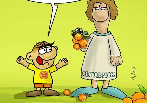 Χιουμοριστική επέλεξε να είναι η πρώτη καλημέρα του Οκτωβρίου ο Αρκάς. Μέσα από τον Θανασάκη καλωσορίζει τον Οκτώβριο που φέρνει και τα μανταρίνια που δεν έχουν κουκούτσια και έχουν και το όνομα της θείας του!