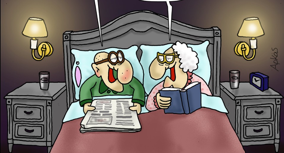 Με την Ασημίνα και τον Ναπολέοντα να είναι στο κρεβάτι και να διαβάζουν επέλεξε να μας καλημερίσει ο γνωστός σκιτσογράφος, Αρκάς. Με το ηλικιωμένο ζευγάρι και ένανυπέροχο διάλογο επέλεξε να ξεκινήσουμε τη μέρα μας.