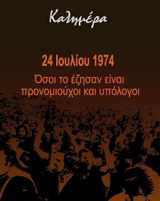 50 χρόνια από την αποκατάσταση της Δημοκρατίας σήμερα (24/7) και ο Αρκάς τιμά τη μέρα με νόημα. Όσοι έζησαν εκείνη την ημέρα, την 24η Ιουλίου του 1974, είναι όχι μόνο προνομιούχοι αλλά και υπόλογοι λέει ο γνωστός σκιτσογράφος…