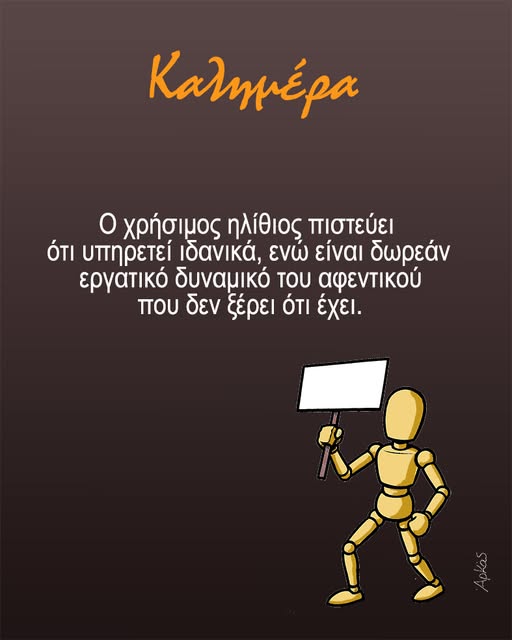 Γράφει σήμερα λοιπόν ο Αρκάς: «ο χρήσιμος ηλίθιος πιστεύει οτι υπηρετεί ιδανικά ενώ είναι δωρεάν εργατικό δυναμικό του αφεντικού που δεν ξέρει ότι έχει».