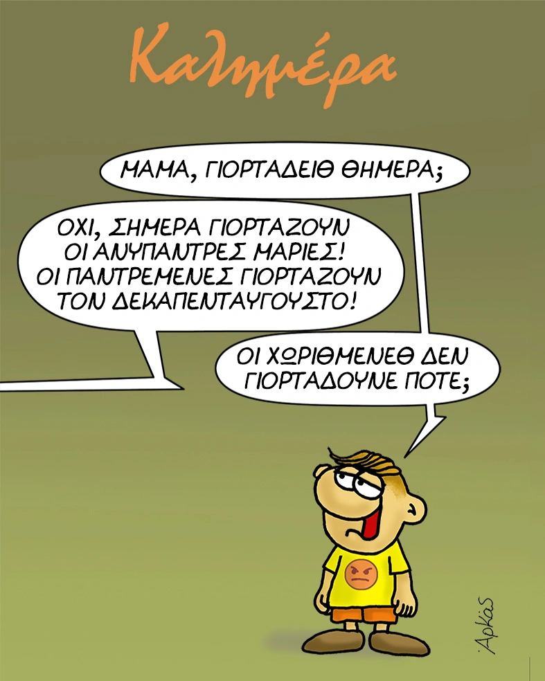 Με ένα σκίτσο αφιερωμένο στις ανύπαντρες… Μαρίες ξεκίνησε ο Αρκάς σήμερα Πέμπτη (21/11)