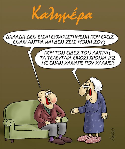 Αυτή την φορά, το σκίτσο του είναι αφιερωμένο κατά κάποιο τρόπο στην τρίτη ηλικία, αφού πρωταγωνιστές είναι το ηλικιωμένο ζευγάρι που έχουν μία στιχομυθία για τον καναπέ και τα… αέρια!