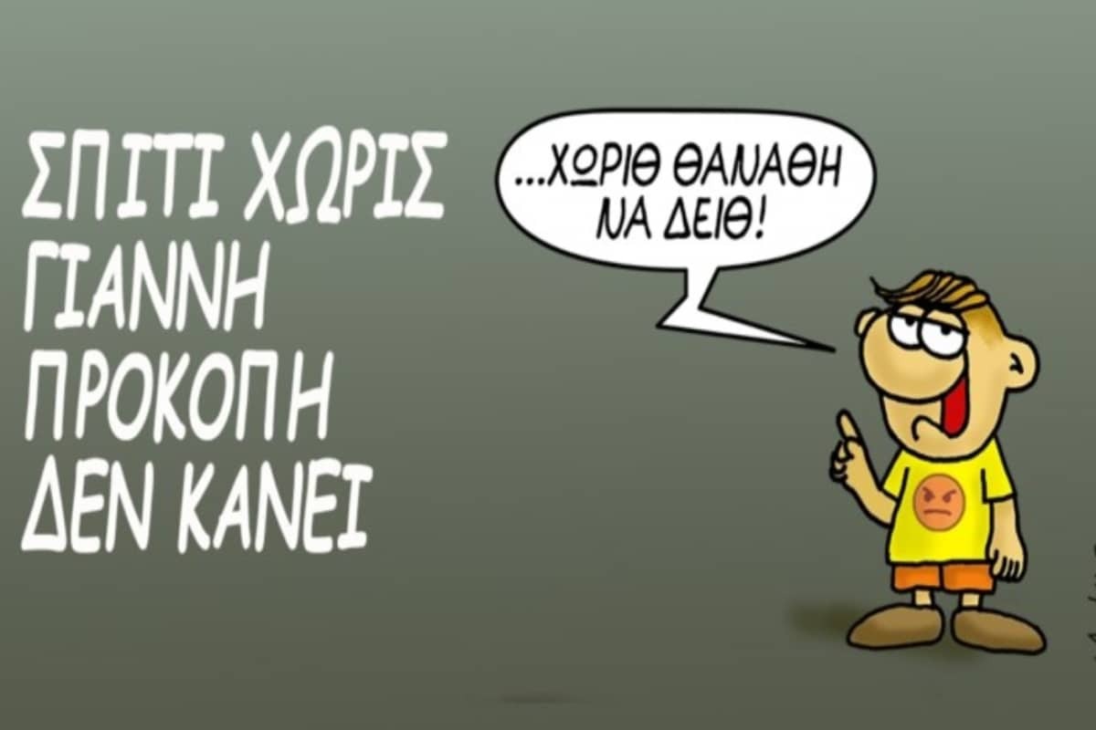 Τα χρόνια πολλά προορίζονται για τους Γιάννηδες που σήμερα έχουν τη τιμητική τους. Συγκεκριμένα, στο σκίτσο αναγράφεται η γνωστή έκφραση “σπίτι χωρίς Γιάννη, προκοπή δεν κάνει”.