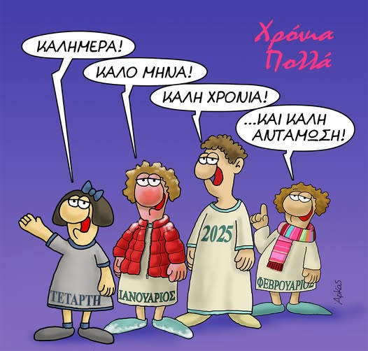 Ο τρίτος είναι το 2025 που εύχεται «καλή χρονιά» και ο τέταρτος είναι ο Φεβρουάριος που εύχεται καλή… αντάμωση!
