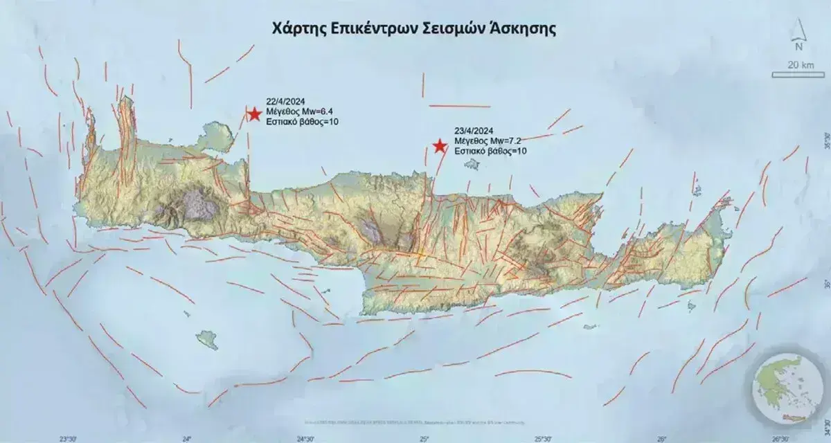 Το σενάριο της Επιχειρησιακής Άσκησης Πεδίου Πλήρους Ανάπτυξης Σεισμού και Συνοδών Γεωδυναμικών Φαινομένων είναι τρομακτικό, καθώς σύμφωνα με αυτό δύο ισχυρότατοι σεισμοί 6,4 και 7,2 Ρίχτερ θα «χτυπήσουν» τη Δυτική και την Ανατολική Κρήτη αντίστοιχα, μέσα σε ένα 24ωρο.