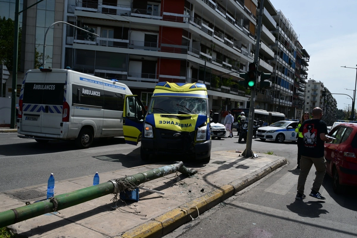 Σύμφωνα με πληροφορίες, όλα ξεκίνησαν όταν ασθενοφόρο που ανέβαινε την Βασ. Κωνσταντίνου συγκρούστηκε με αυτοκίνητο την ώρα που έβγαινε από τη Βασ. Γεωργίου Β’, στο Παγκράτι, με αποτέλεσμα το ασθενοφόρο να πέσει πάνω σε κολώνα φωτισμού, η οποία έπεσε πάνω σε δύο πεζούς και τους τραυμάτισε.