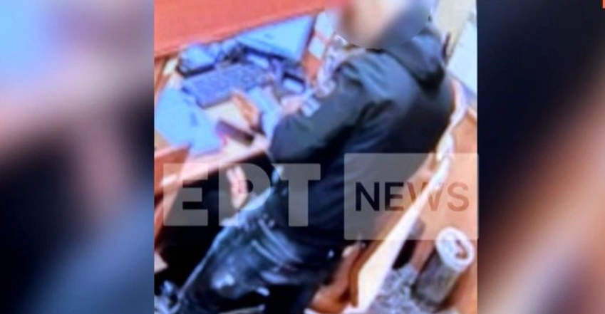 Στη φωτογραφία, φαίνεται ο δράστης να έχει περάσει μέσα από τη ρεσεψιόν κεντρικού ξενοδοχείου στα Νότια προάστια και με την απειλή όπλου ακινητοποιεί την νεαρή υπάλληλο.