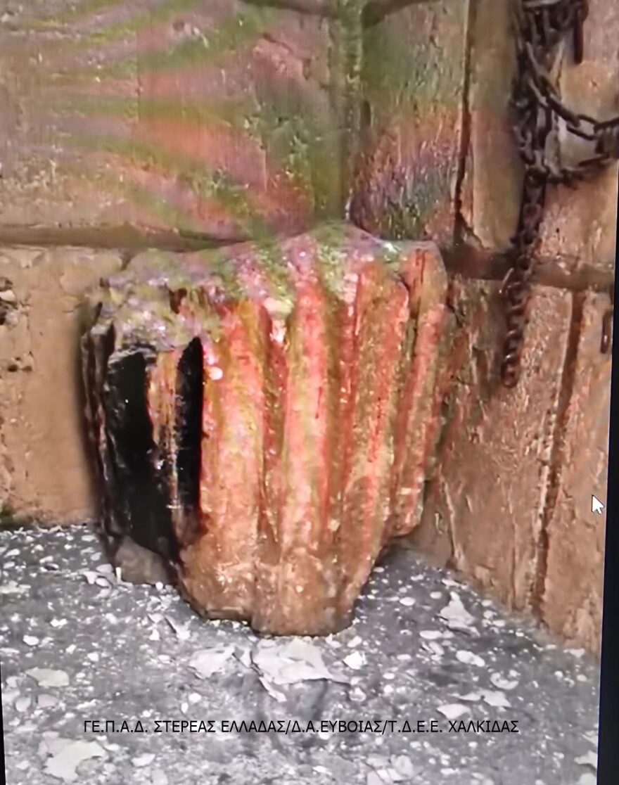 Ιδιαίτερο ενδιαφέρον παρουσιάζει η ανεύρεση τμήματος αρχαίου κίονα, γεγονός που στοιχειοθετεί και παραβάσεις της νομοθεσίας περί προστασίας αρχαιοτήτων.