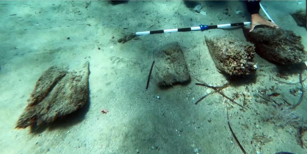 Όλα αυτά βρέθηκαν δίπλα σε φερτά υλικά, τούβλα, τσιμεντόλιθους, λάστιχα αυτοκινήτων, ακόμη και μια οθόνη τηλεόρασης που, όπως είπαν οι κάτοικοι της περιοχής, κατέληξαν εκεί κατά τις πλημμύρες των τελευταίων δεκαετιών. Στο ίδιο σημείο βρέθηκε και μια σύγχρονη σκάλα, που όπως φαίνεται, χρησιμοποιήθηκε σε λαθρανασκαφή και επρόκειτο να λειτουργήσει ως φορείο για την απομάκρυνση του ενός κανονιού από το βυθό.
