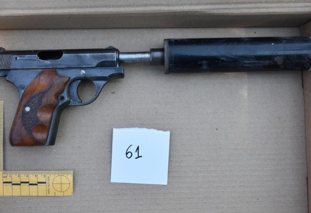 Η έρευνα επεκτάθηκε στην ευρύτερη περιοχή, με αποτέλεσμα τον εντοπισμό της διαδρομής που ακολούθησαν οι δράστες κατά τη διαφυγή τους. Παράλληλα, σε απόσταση λίγων εκατοντάδων μέτρων από την οικία και σε δύσβατη θαμνώδη έκταση, εντοπίστηκε ένα πιστόλι ανατολικού τύπου που έφερε σιγαστήρα και γεμιστήρα με -5- φυσίγγια, μάλλινος σκούφος και ζευγάρι γάντια με ίχνη πυρίτιδας.