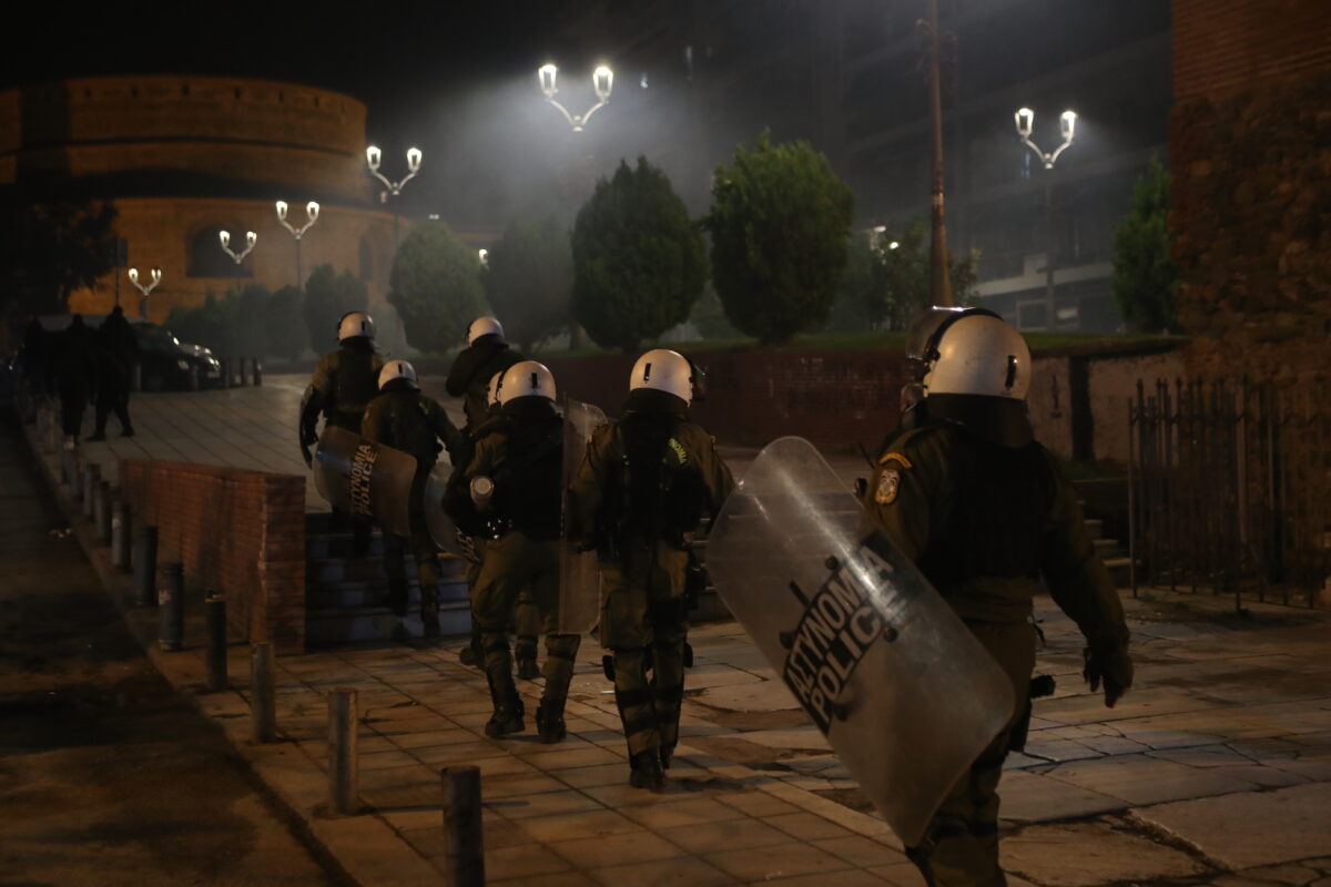 Καθώς οι συγκεντρωμένοι κινούνταν προς την Καμάρα για να ολοκληρώσουν τη διαμαρτυρία τους, ξέσπασε ένταση με τις αστυνομικές δυνάμεις. Στο σημείο επενέβησαν διμοιρίες των ΜΑΤ, κάνοντας χρήση χειροβομβίδων κρότου–λάμψης, ενώ η αστυνομία προχώρησε στην προσαγωγή τεσσάρων ατόμων.