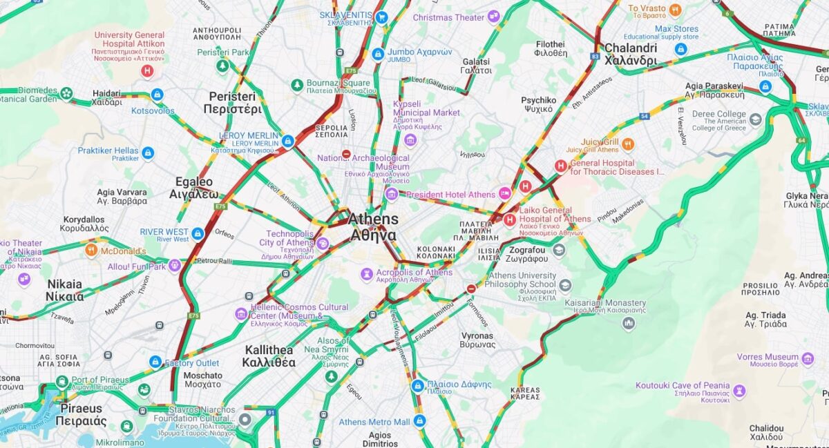 Μεγάλες καθυστερήσεις σημειώνονται και στην Αττική Οδό, στο ρεύμα προς Ελευσίνα, από Κάντζα έως Κηφισίας, και από Αγία Παρασκευή έως Κηφισίας στην Περιφερειακή Υμηττού. Καθυστερήσεις και στο ρεύμα προς Αεροδρόμιο, από Μεταμόρφωση έως Κηφισίας.