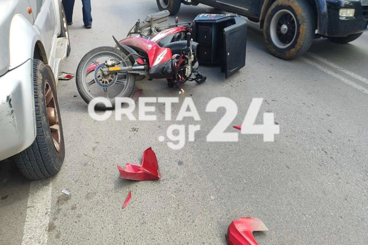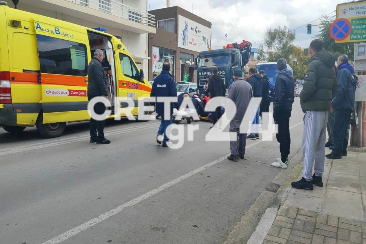 Σύμφωνα με το creta24.gr, μια μηχανή παρέσυρε γυναίκα που κινούνταν πεζή, με αποτέλεσμα εκείνη να τραυματιστεί στο κεφάλι. Ωστόσο, ελαφρύτερα, τραυματίστηκε ο οδηγός της μηχανής, καθώς έπεσε στο οδόστρωμα.