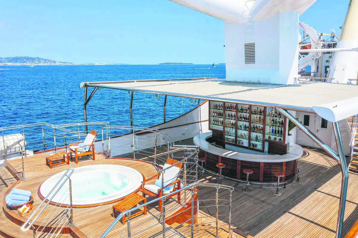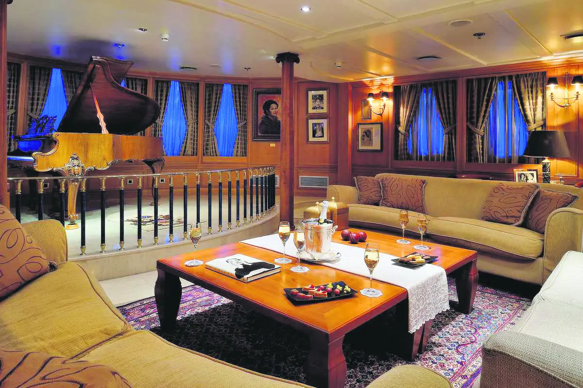 Η θαλαμηγός διέθετε πολυτελείς σουίτες, ανάμεσά τους και την περίφημη σουίτα του Ωνάση, με τζάκι, βιβλιοθήκη και μπάνιο από μπλε μάρμαρο Σιένας, καθώς και έργα τέχνης μεγάλων δημιουργών, όπως ο Ρενουάρ και ο Γουόρχολ. Επίσης, ο Ελληνας κροίσος χρησιμοποιούσε τη θαλαμηγό ως κινητό γραφείο, κλείνοντας συμφωνίες και καλλιεργώντας σχέσεις με ανθρώπους που καθόριζαν τις διεθνείς εξελίξεις.
